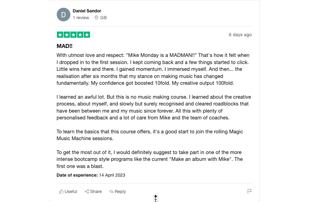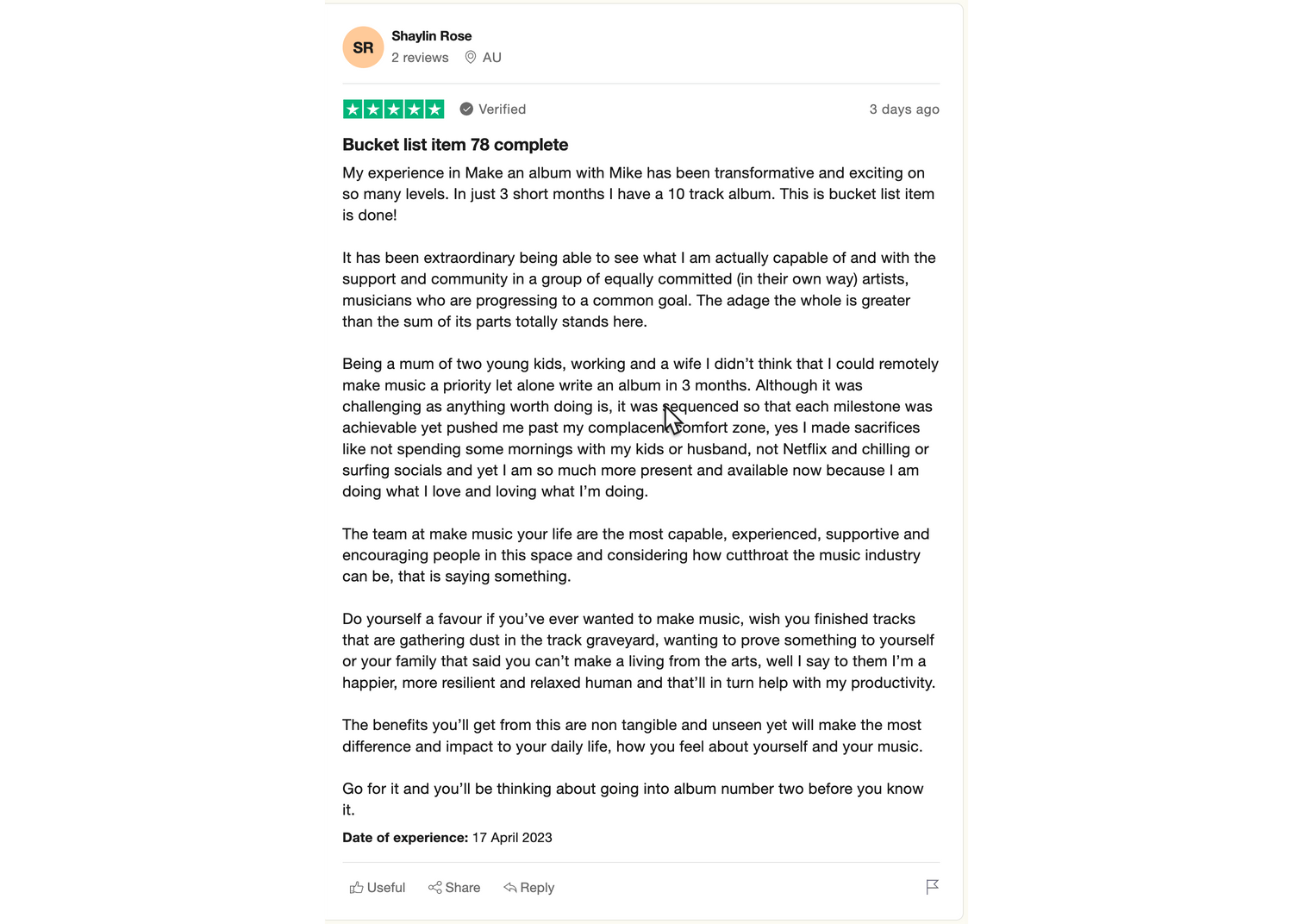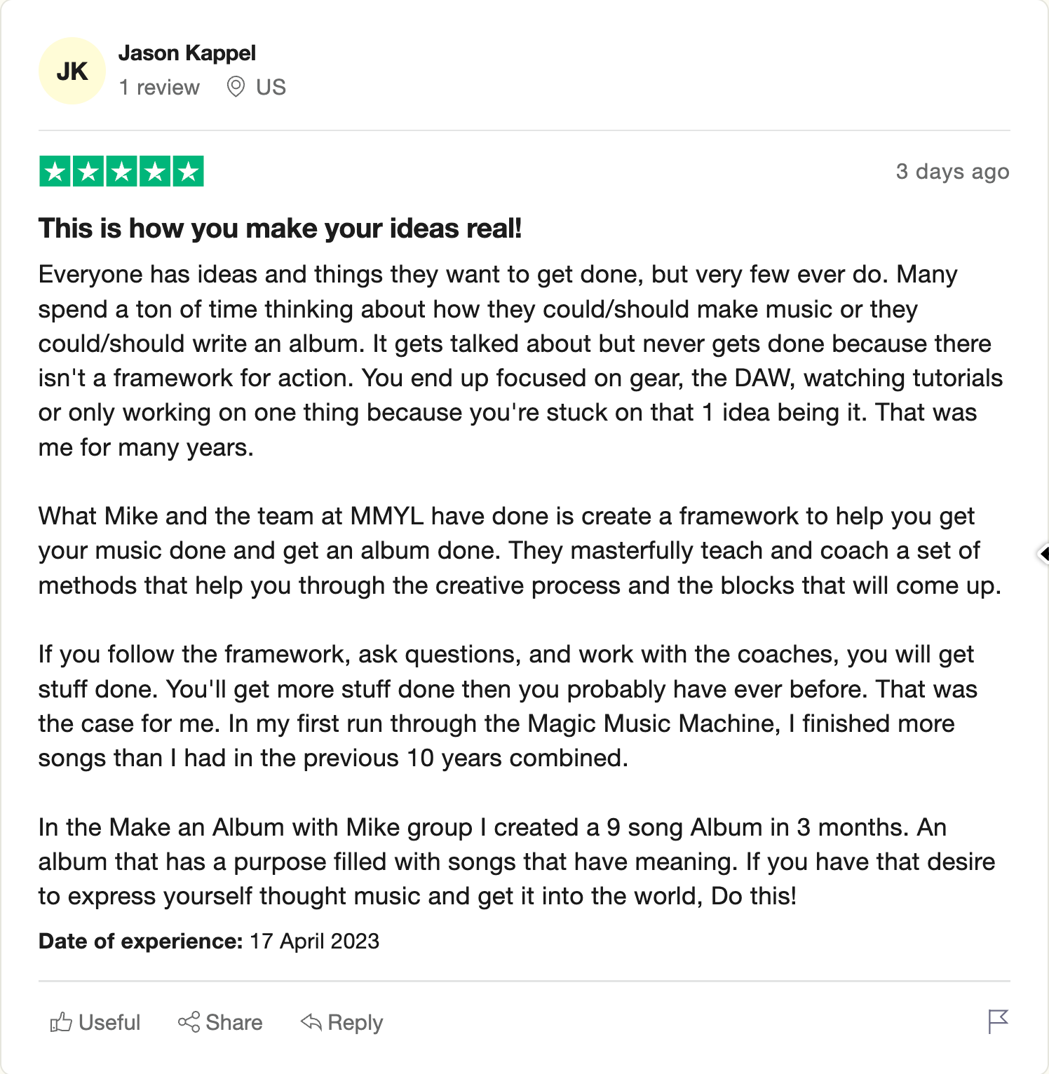 That said, EVERYTHING inside of Make an Album With Mike will apply to you, as long as you are writing, making and/or producing music.